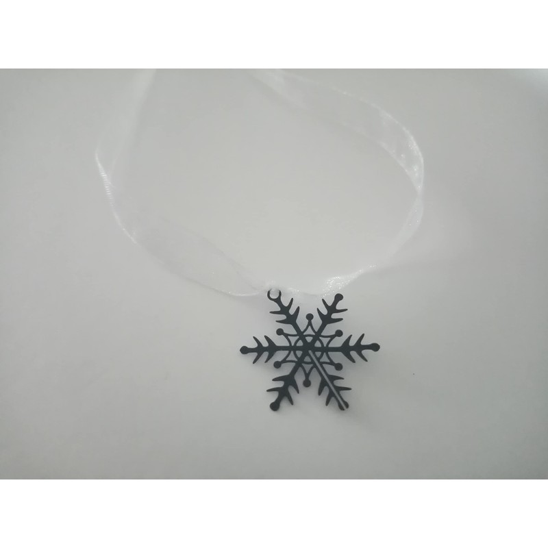 - Deep blue snowflake charms on white ribbon