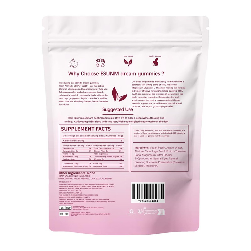 ESUNM Deep Dream Sleep Gummies with 5mg Melatonin, Magnesium, Glycinate, L-Theanine for Sleep Support- Non-Habit Forming Sleep Supplement,60 Gummies, 30 Day Supply
