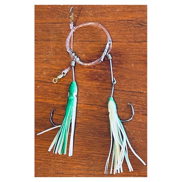 Deep Drop Bait Rig (with Skirts) (Green and White Skirt, with Two 7/0 Circle Hooks)