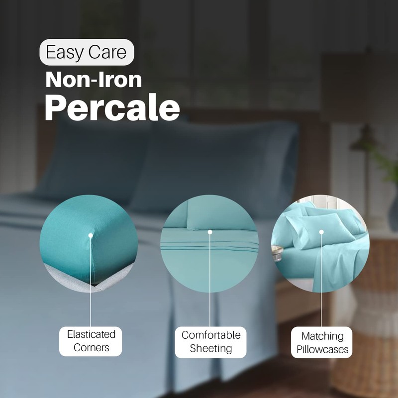 Deep Fitted Bed Sheets Easy-Care Non-Iron Percale 10'' / 25CM Fitted Sheet (Teal, Double)