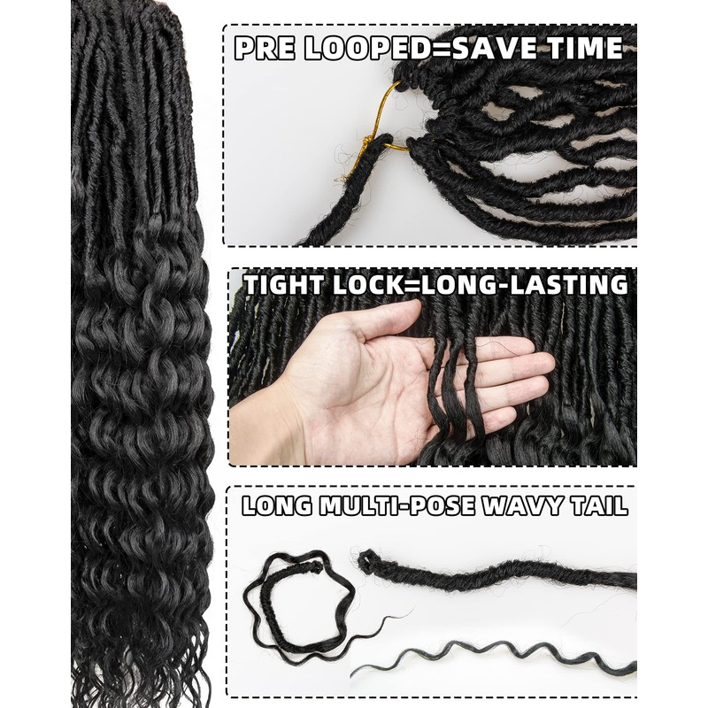 - Fashion Style:Miss Sula Deep Wave Ends Faux Locs Crochet Hair,100% handmade curly,each hair is hand-mixed from a variety of good quality fiber.
