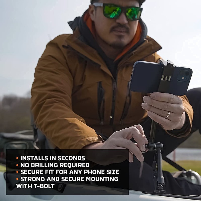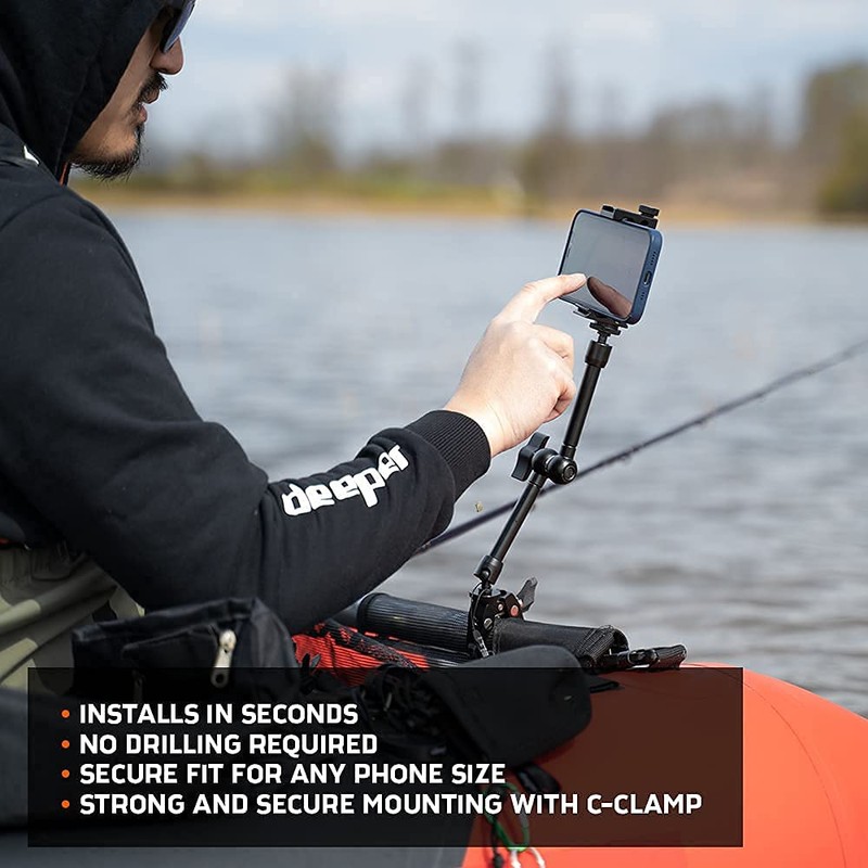 - Easy adjustment: place the magic arm of the smartphone holder in the position you want. Position your phone in a comfortable position where you need it, when fishing by boat or kayak.