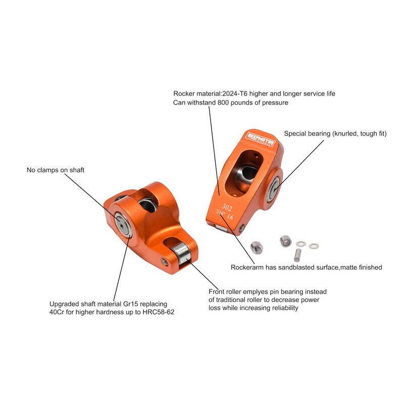 - Rocker arm has sand blasted surface,matte finished Upgraded shaft material Gr15 replacing 40Cr for higher hardness up to HRC58-62