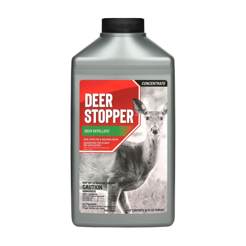 Messina Wildlife's Deer Stopper products come in a variety of ready-to-use and concentrate sizes, as well as a revolutionary, proprietary pre-treated barrier ribbon. These highly effective products prevent deer, elk and moose from bedding down, rubbing and foraging damage to all shrubs, flowers, edible crops, forest areas, fruit trees and turf areas. Safe for use around fruits and vegetables, made of organic ingredients. These pleasant to use products all dry clear and odor free, and they work by smell, taste and feel. Concentrates make ten times their size in ready to use material.