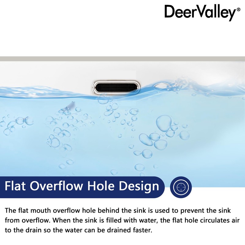 - Effortless Maintenance: Featuring a seamless design and a smooth, non-porous glazed surface, this sink is easy to clean and prevents dirt buildup. The flat overflow hole design ensures efficient water drainage, enhancing its longevity and aesthetic appeal.