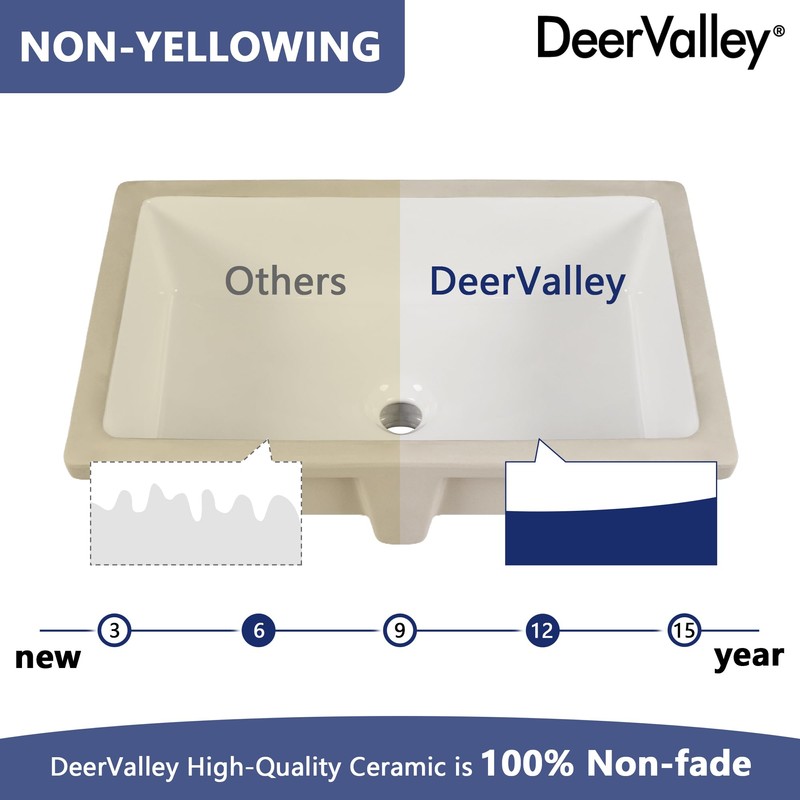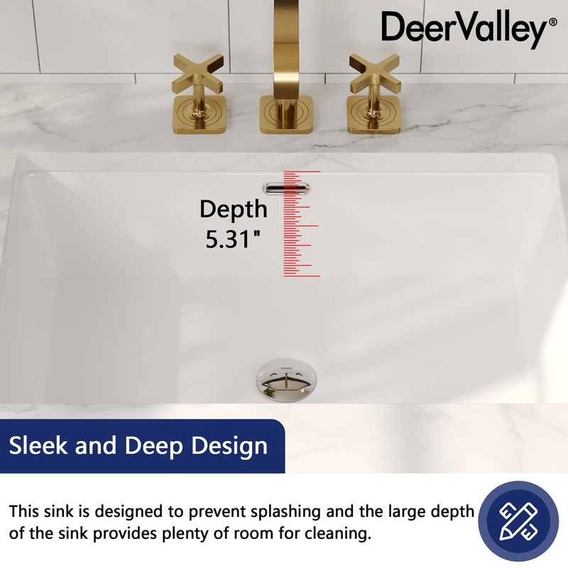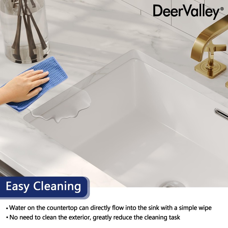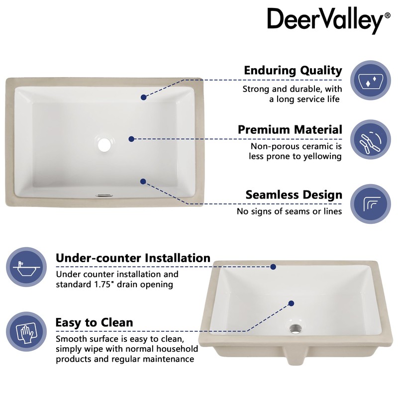 DeerValley 23.9"x15.79" Undermount Bathroom Sink Rectangular Undermount Sink White Ceramic Under Counter Bathroom Sink with Flat Overflow DV-1U0209