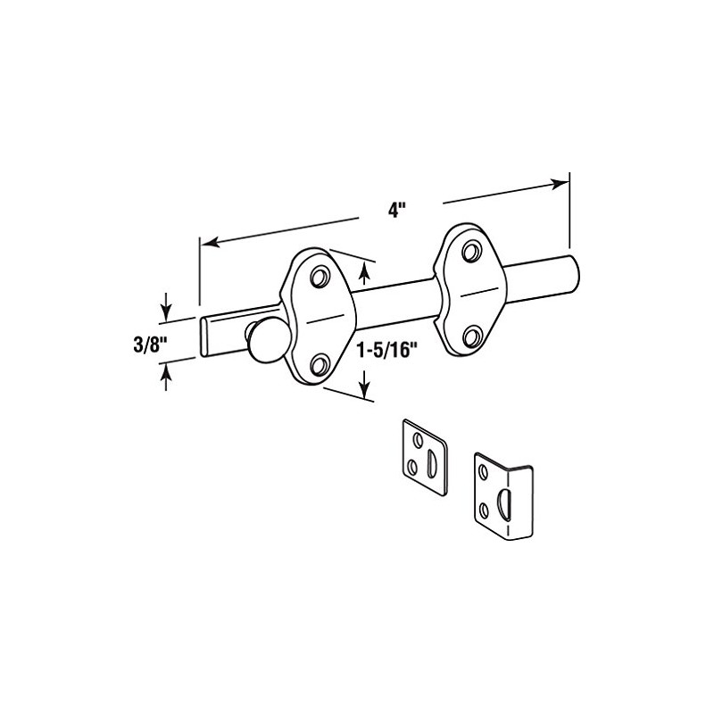 This surface bolt is constructed from steel and is painted white. It features guide brackets that adjust to fit unique installation conditions. It has two keepers that allow for surface or mortise frame installation.