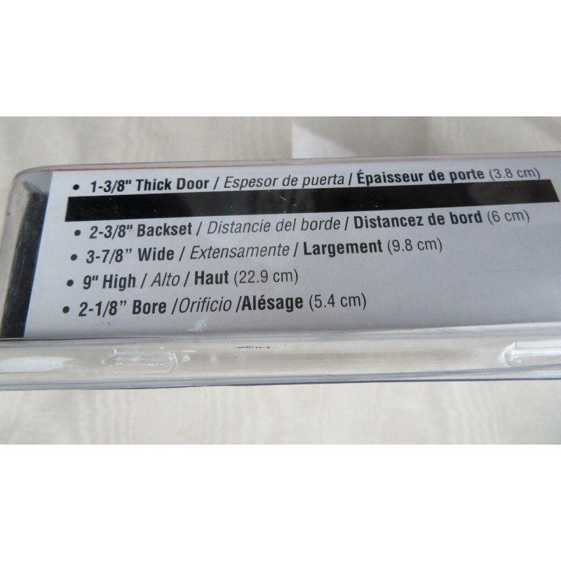 DIMENSIONS – The door lock reinforcement plate is designed for 1-3/8 inch thick doors; it features one 2-1/8 inch bore with a 2-3/8 inch backset