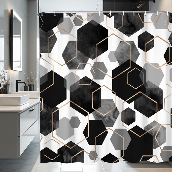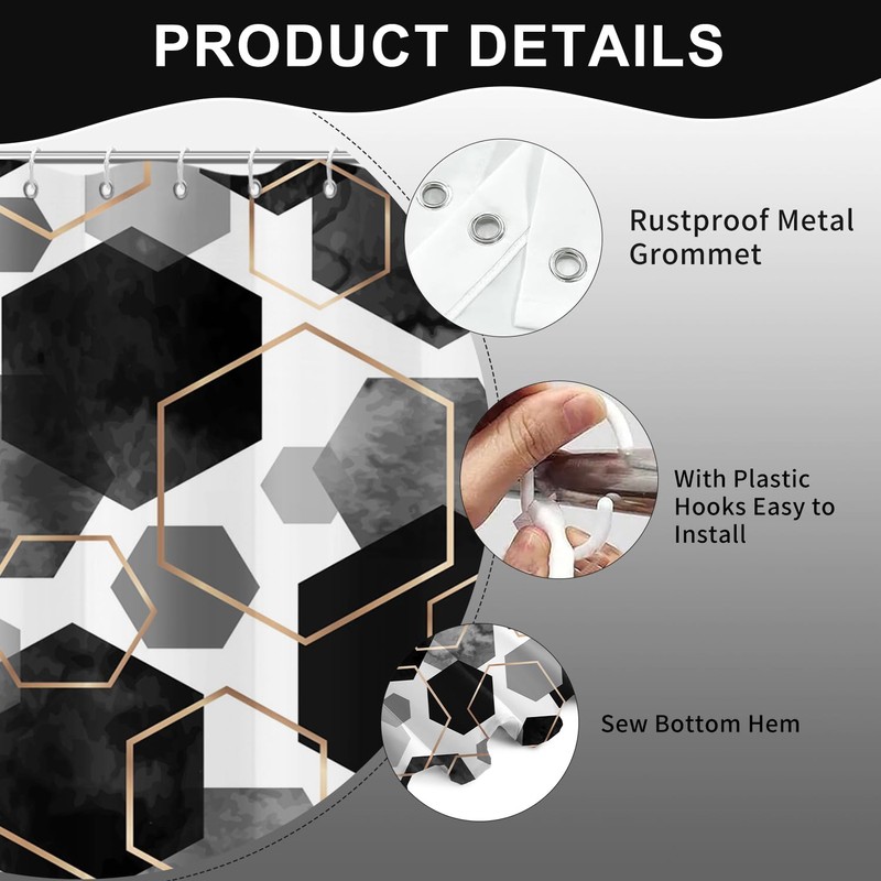 - Modern Hexagon Design: Modern and unique geometric hexagon design of print, high definition with vivid black colors, elegant and luxury, making our bathroom curtain an ideal choice for those who appreciate timeless charm in their decor.