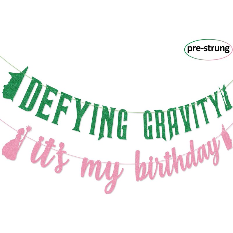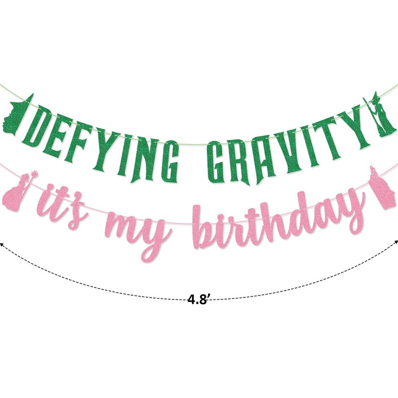 Defying Gravity It's My Birthday Banner for Wicked Witch Birthday Party Pink and Green Party Decorations