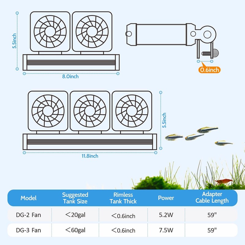 - Fish Tank Cooler: When the temperature of fish tank reaches 86℉, the life of fish will be threatened, DEGGOX Fish Tank Cooling Fan can keep the temperature of fish tank at 68℉-78℉.