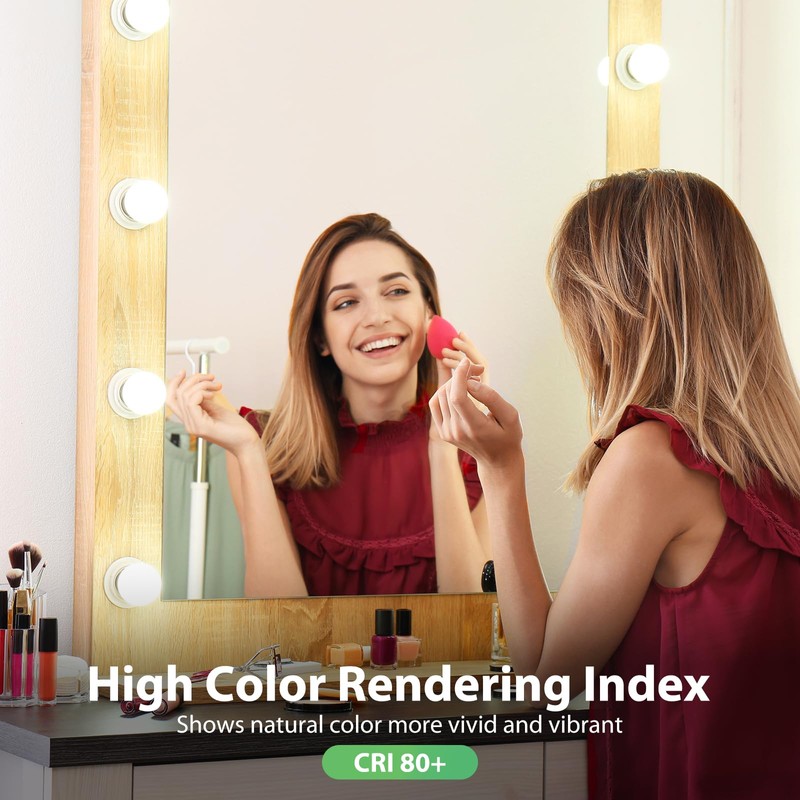 - Flicker-Free Lighting: The round light bulbs provide consistent, stable illumination with no flickering, ensuring a comfortable and strain-free lighting experience. Perfect for makeup application, grooming, or any task requiring precision, it helps protect your eyes while delivering flawless, uninterrupted light