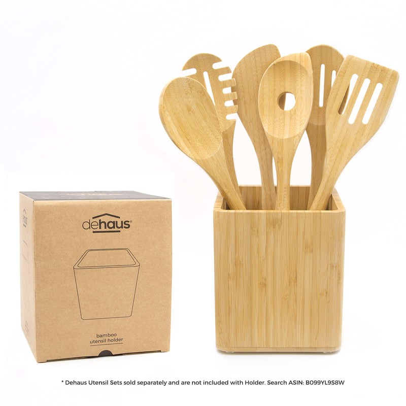 - 🌿 STYLISH MODERN DESIGN: High quality & stylish bamboo utensil holder by Dehaus with a Scandi design. The smooth rounded edges give the holder a chic designer shape. Complete the look by combining it with one of Dehaus' matching premium bamboo kitchen utensil sets.