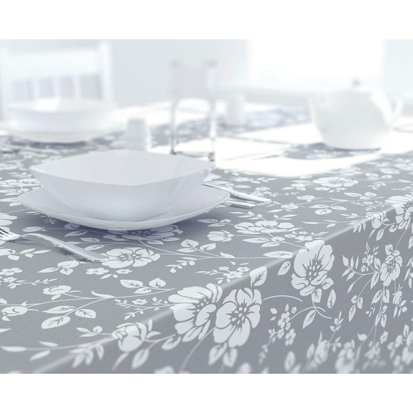 Dehaus® Light GREY Stylish Wipe Clean Rectangular PVC TABLECLOTH 140cm x 200cm (Floral Bloom)