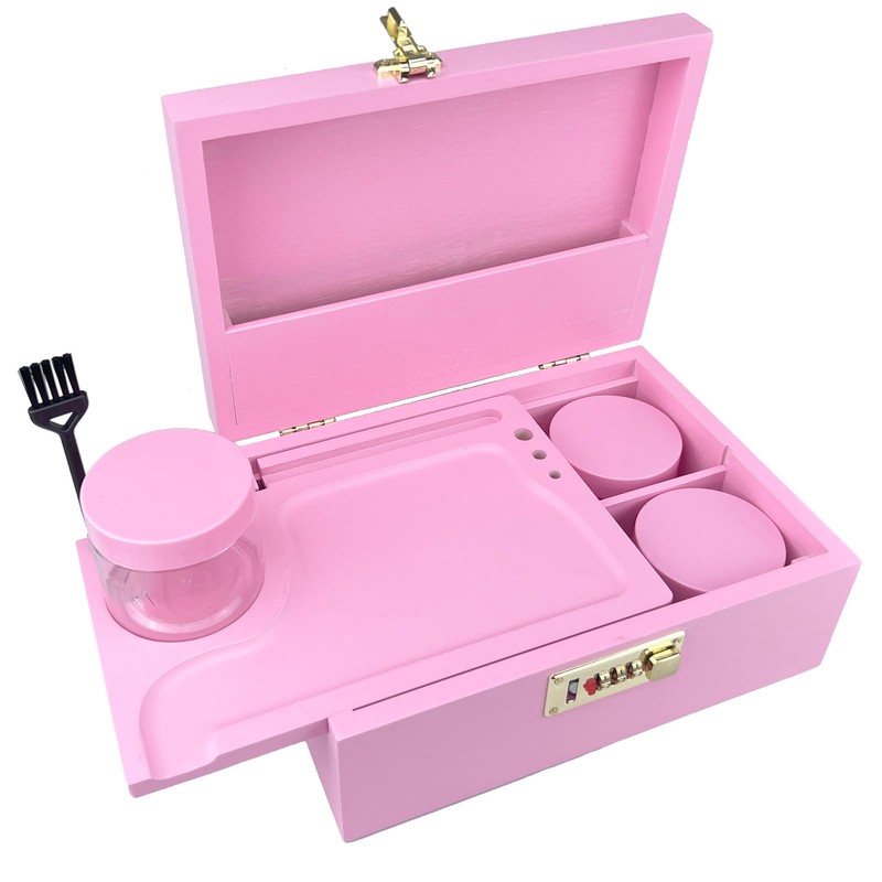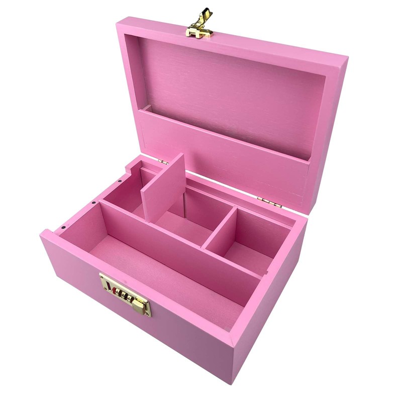 DEHVEN Large Bamboo Box Storage Decorative Jar Storage, Box with Lock (Pink)