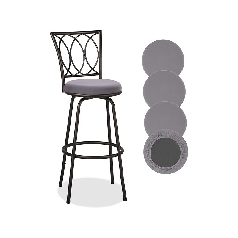 Deisy Dee 4PCS Round Bar Stool Seat Covers Stretch Round Chair Covers for 13-16 Inch Stool Chair (Grey)
