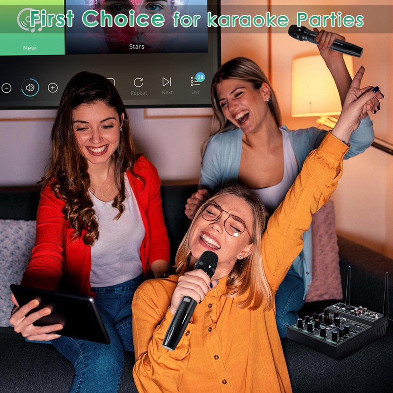- Powerful Wireless Microphone Functionality C Equipped with 2 UHF wireless handheld microphones, the system offers a stable signal range of up to 180 feet. Each microphone has independent volume, echo, and audio optimization controls, suitable for singing, speeches, and various other applications.