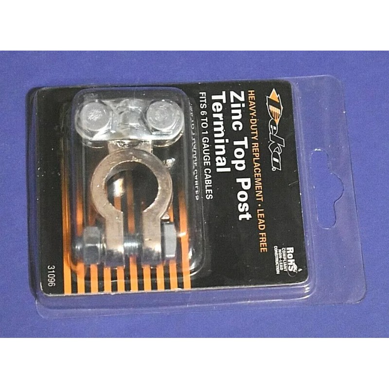 OFFERING A NEW ZINC (LEAD FREE) HEAVY DUTY TOP POST BATTERY TERMINAL. FROM DEKA EAST PENN. FOR 1 TO 6 GAUGE CABLES.