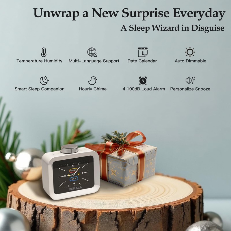 - 【Surprise Bonus All-in-one】 Temperature and Humidity Environment Hub – Built-in ±0.2°C precision thermometer/hygrometer monitors room comfort , Date display, 7-day programmable Loud Alarms, Hourly Chime, Dynamic Animated Theme for Wake-up and Sleep.