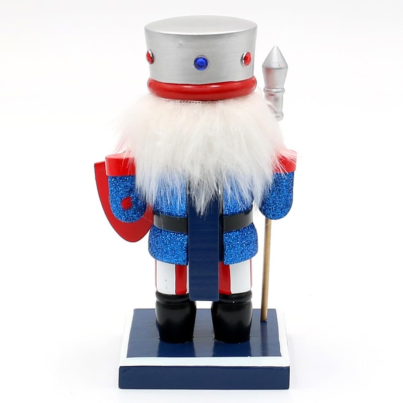 - This wooden nutcracker soldier in blue, silver and red with spear and crest is sure to conquer the heart of your Christmas decoration. Order today and let it liven up and upgrade your festive space.