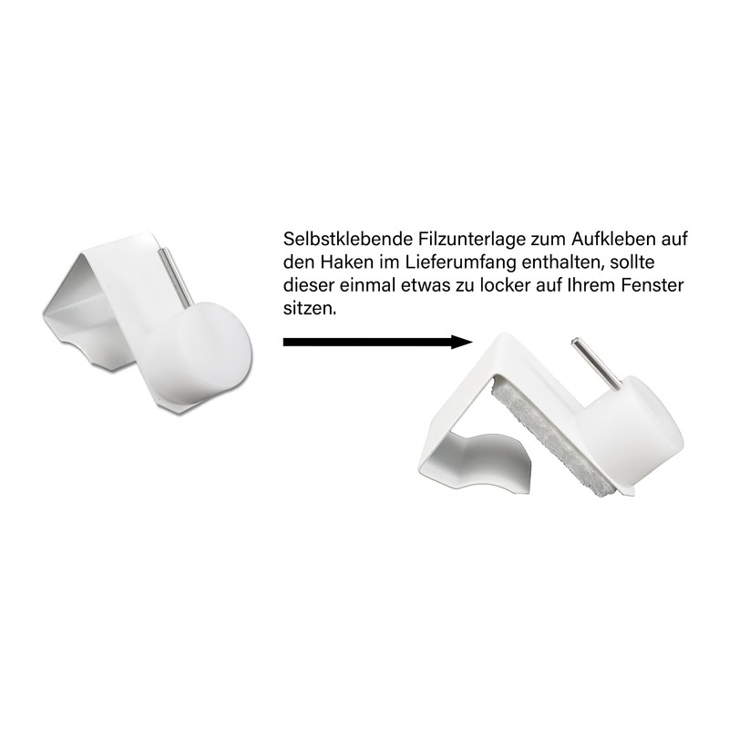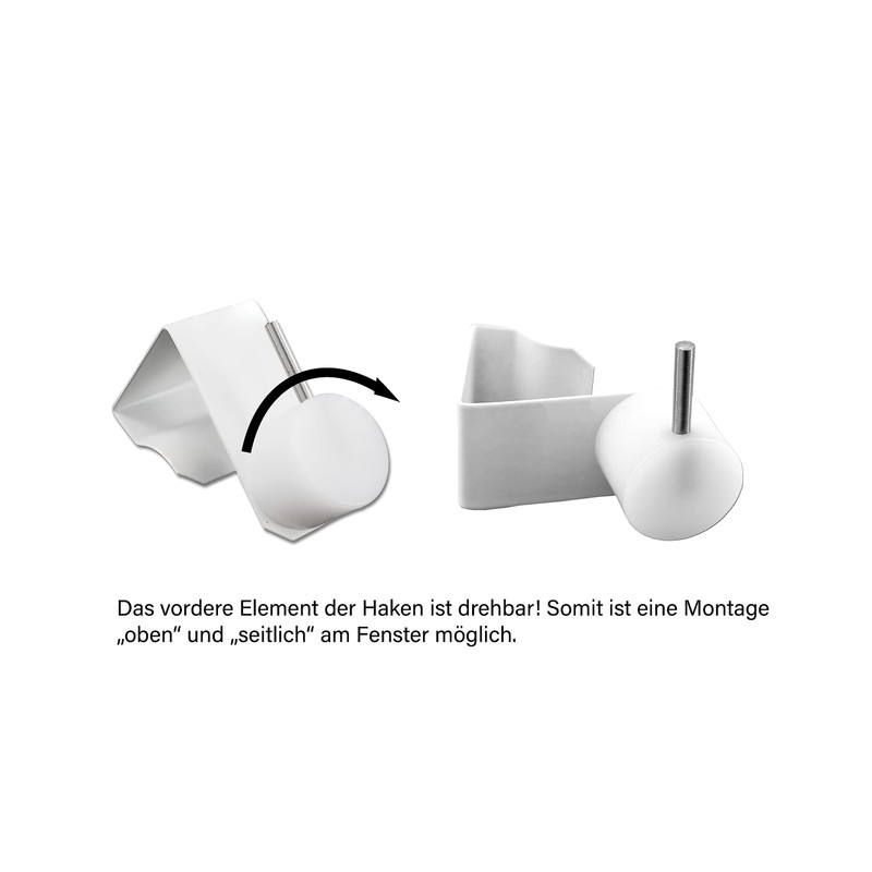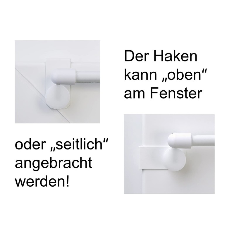 No gluing, no drilling, no tools, window hooks/decorative hooks/window clip/window clip for hanging curtain rods, curtain rods, window curtains. Your window decorations or window decorations can also be attached quickly and effortlessly. Simply hang in the fold of the window and hang your curtains or window decorations. The product is made of high quality spring stainless steel and powder coated. The hook fits windows with different frame thickness/window thickness of 10-25 mm (choose the right size when purchasing). Each hook comes with a felt pad to stick on the hook if it sits too loose on the window. No damage to the window. No adhesive residue on your window due to fallen adhesive hooks. Can be removed again and again. The hook can be attached to the side or top of the window. The front element is rotatable.