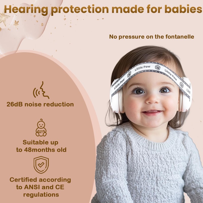 - Efficient Noise Reduction: Noisy sounds can be quite harmful to babies and may cause permanent damage to their hearing. Our baby headphones boast an impressive noise reduction rating of 26 dB, safeguarding your child's delicate ears from harmful noise levels. Let babies sleep comfortably even in airplane, fireworks, parties, bonfires night, weddings, competitions environments.