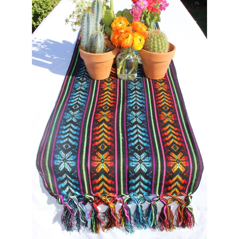 Add a splash of color to your next Baby Shower, bridal shower, fiesta, or Cinco de Mayo event with these woven rebozo style table runners. The rebozo was originally made as a brightly colored piece of clothing used in Mexico to carry children. The rebozo is still used for this purpose in old Mexico, but is also now popular as a scarf, shawl, table runner or throw. These runners are great for any occasion