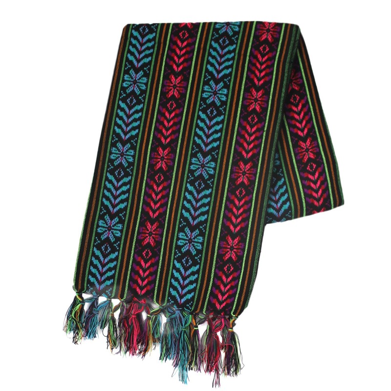 Del Mex Woven Rebozo Style Mexican Table Runner Scarf (Black)