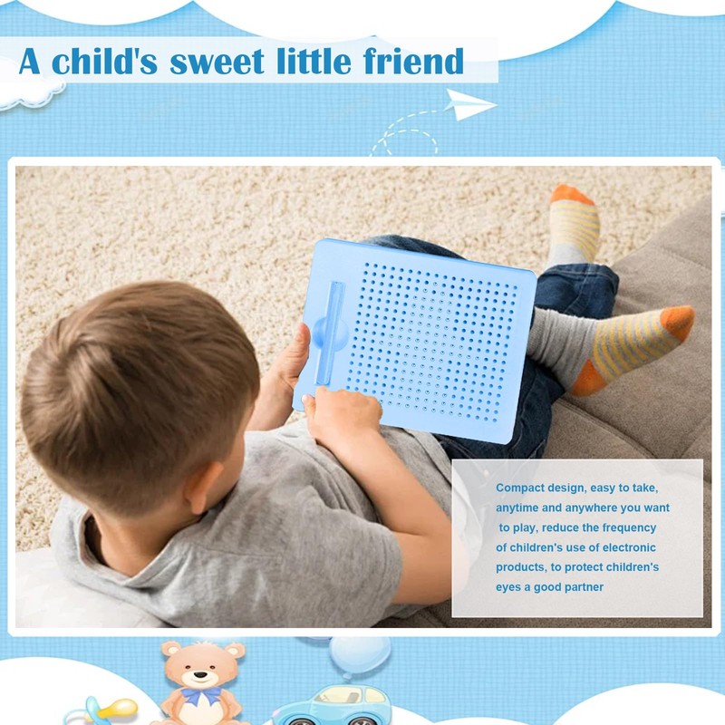 - Wide range of uses: the children's magnetic drawing board comes with a magnetic pen, which is easy and convenient to use. Simply align the magnetic pen tip to the desired hole to move the steel ball, and then press down with your finger or pen tip to erase the ball.