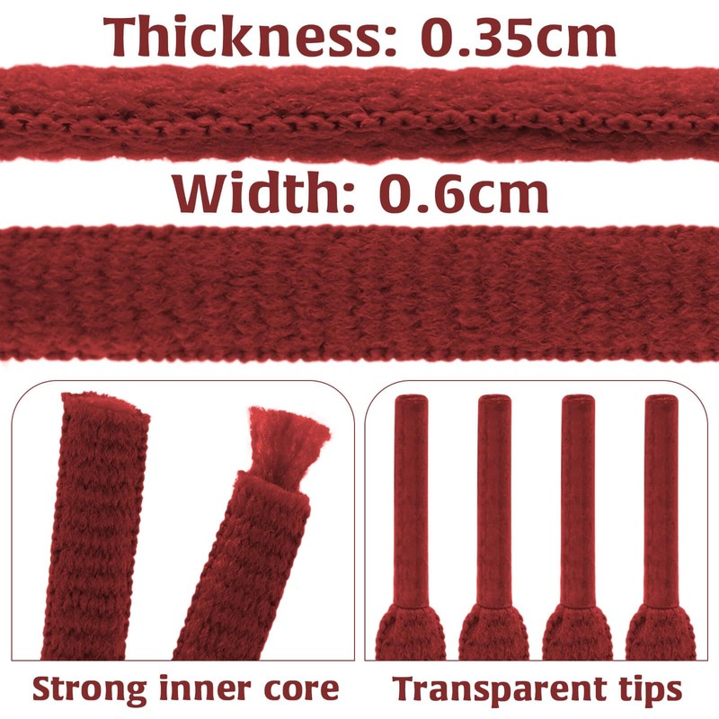 DELELE 2 Pair Oval Shoes laces Half Round 1/4" Athletic Shoelaces Shoe Strings Dark Red-35 inch