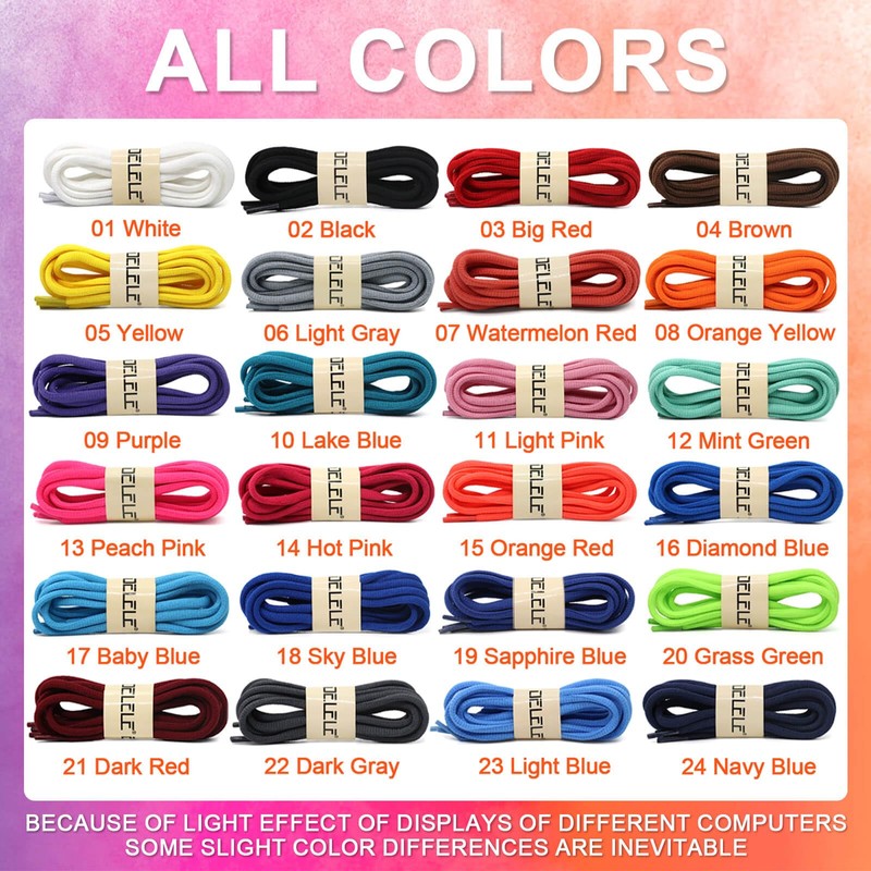• Packing: 2 Pair(4 Laces)Shoelaces Per Order(when you put quantity "1", means you will get 2 pair of shoelaces);The length of Error range: 1-3CM;