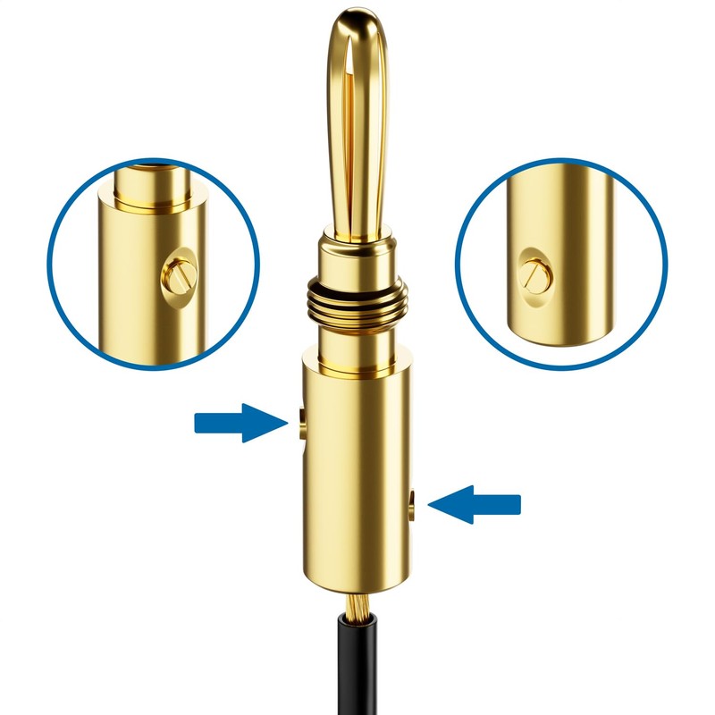 - ►Attention: grub screws can be Loose in the packaging or in the banana plug. Easy to install: fix the speaker cable with 2 screws and screw banana plugs together
