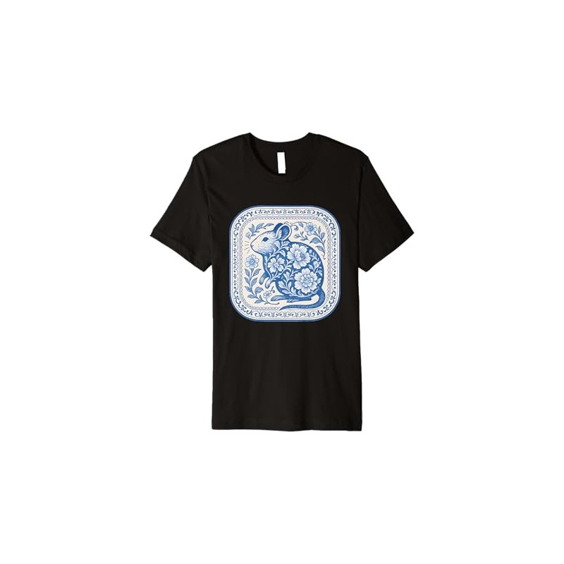 Delft Blue Degu Floral Ceramic Pattern Premium T-Shirt
