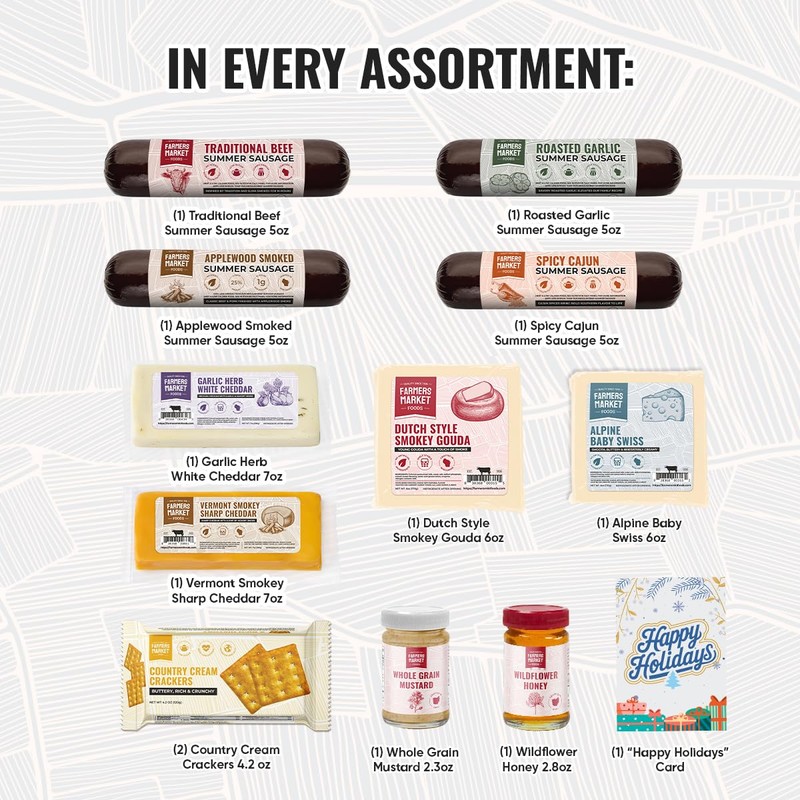 - OVER 1.5 LBS OF MEATS AND CHEESES. While other gift boxes contain deceiving overpriced miniature sized items that arrive in an embarrassingly tiny box, we built a gift basket that you can share with family, friends, or the office