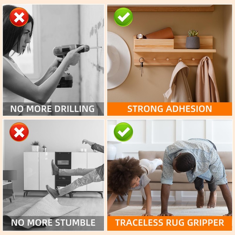 - 【Waterproof & Reusable】- This nano tape won't easily falling off even in damp bathroom environments. when the tape needs to be reused, rinse the surface with cold water and let it dry naturally, its stickiness will be restored immediately.