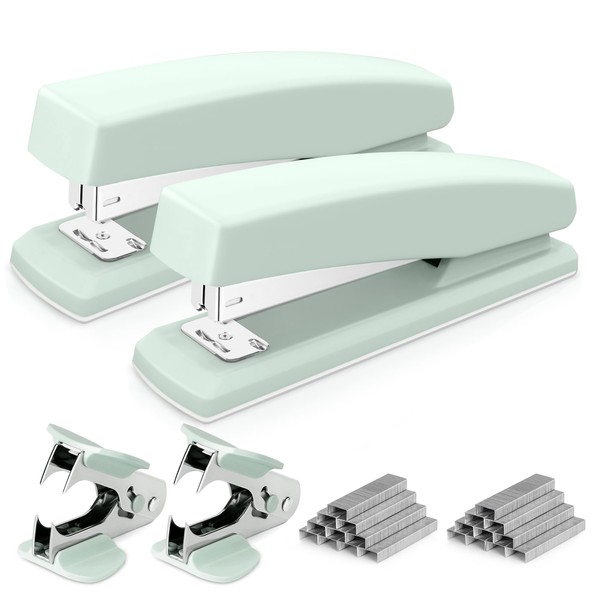 Deli Stapler, Desktop Stapler, 2 Pack, Office Stapler, 25 Sheet Capacity, Includes 2000 Staples and 2 Staple Removers, 2 Pack, Green