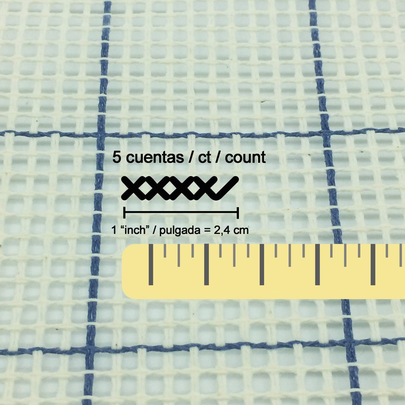 - Fabric: 5 count (beads) / 1.97 stitches per centimetre. It is a generously stitched structure, ideal for beginners.