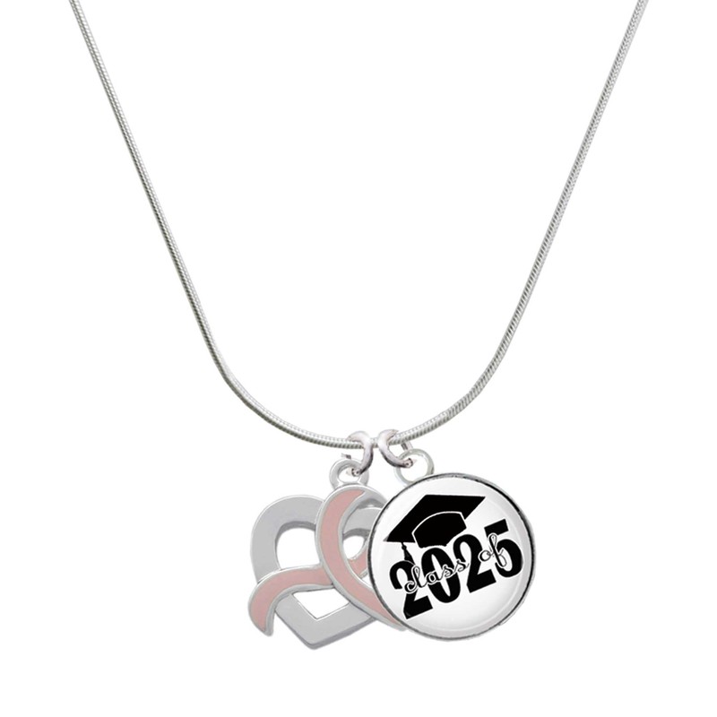 - Silvertone Heart Outline with Pink Ribbon Looping Through Script Class of 2025 Dome Charm Necklace, 18".