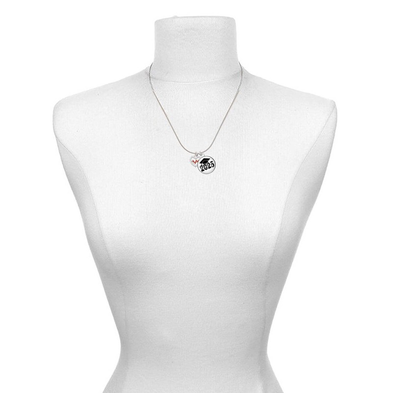- Silvertone Heart with Red Crystal Pulse Script Class of 2025 Dome Charm Necklace, 18".