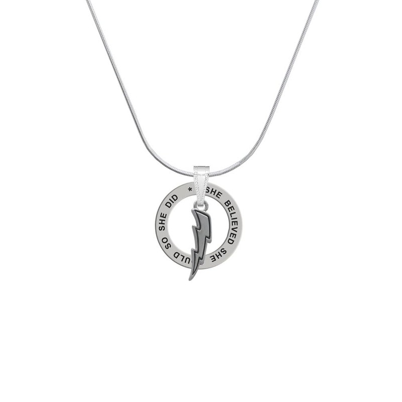 - Imitation Rhodium Plated Lightning Bolt - Silvertone She Believed She Could So She Did Message Ring Necklace, 18".