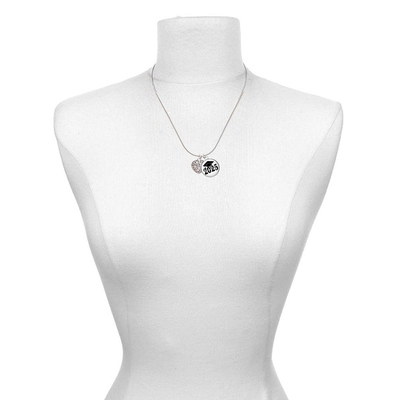 - Silvertone Medium Open Filigree Heart Script Class of 2025 Dome Charm Necklace, 18".