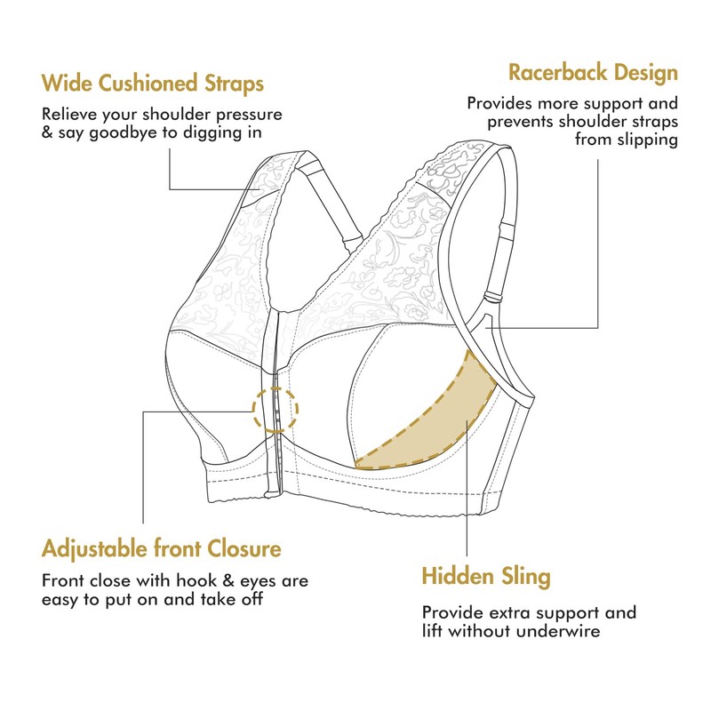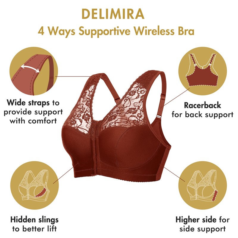 DELIMIRA Women's Front Closure Bras Racerback No Underwire Plus Size Full Coverage Lace Cotton Bra Beige 38DD