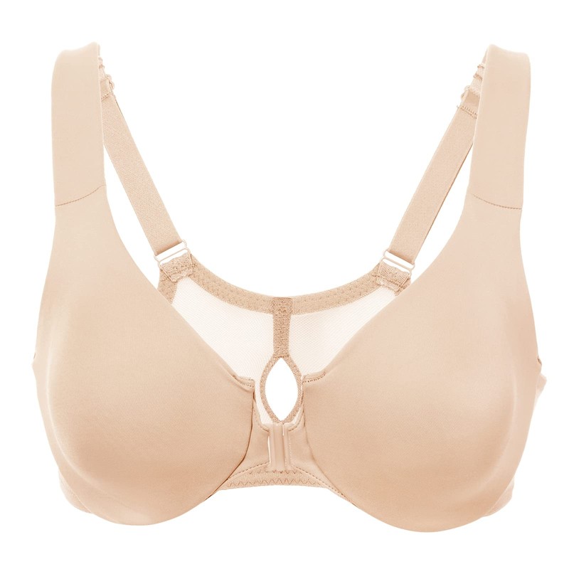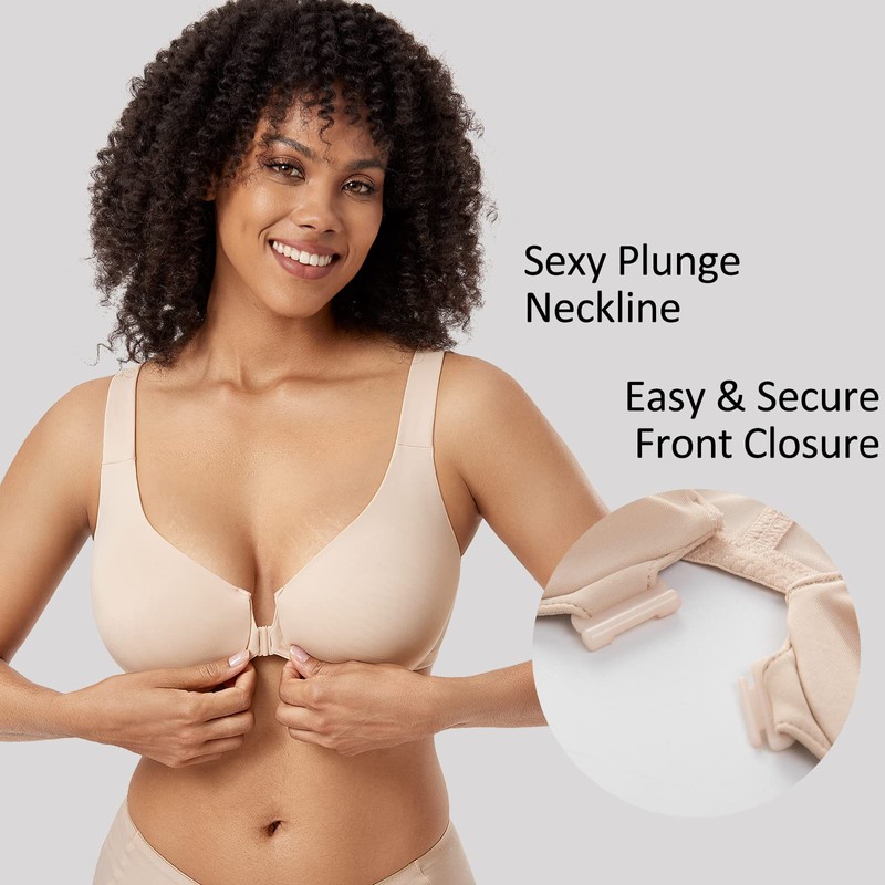 DELIMIRA Women's Front Closure Racerback Bras Plus Size Underwire Unlined Full Coverage Plunge Bras Beige 42D