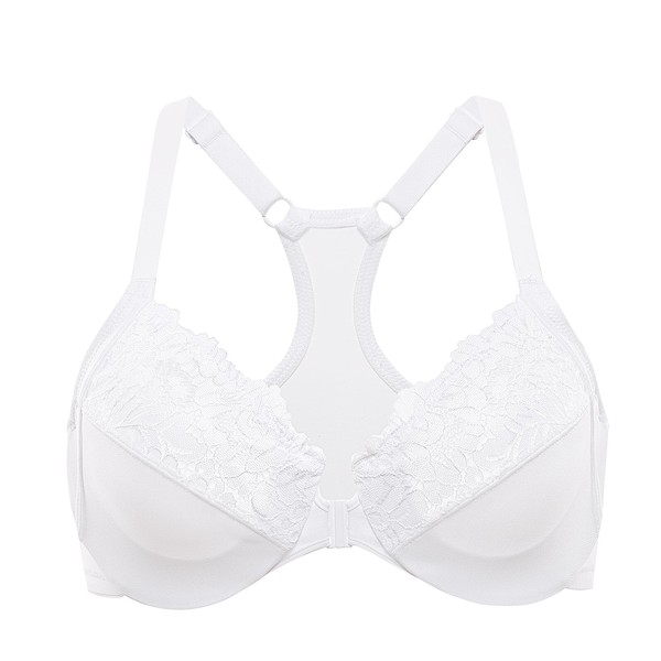 DELIMIRA Women's Racerback Front Closure Bras Lace Plus Size Full Coverage Underwire Unlined Support Bra White 40E