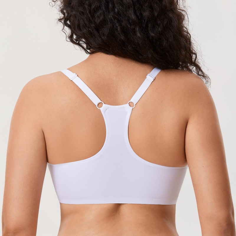 This front-closure bra is designed with a smaller racerback, which helps you match more specific outfits.