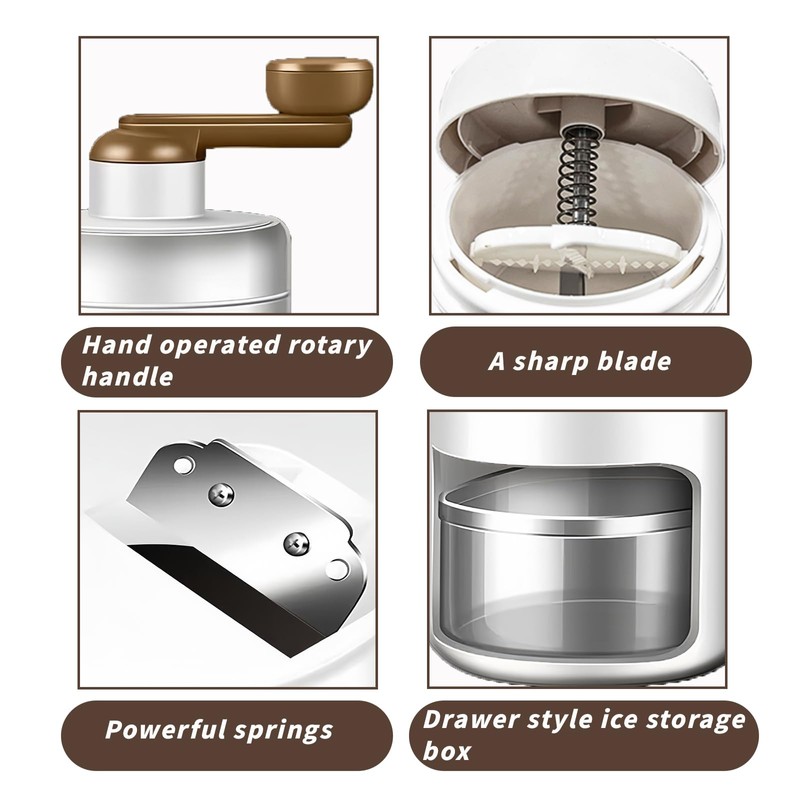 - 1.✨【Hochwertige, lebensmittelechte Materialien】dellyy ice crusher manuell Hergestellt aus langlebigem BPA-freiem ABS und rostfreien Edelstahlklingen für sicheren Lebensmittelkontakt und langlebige Leistung.