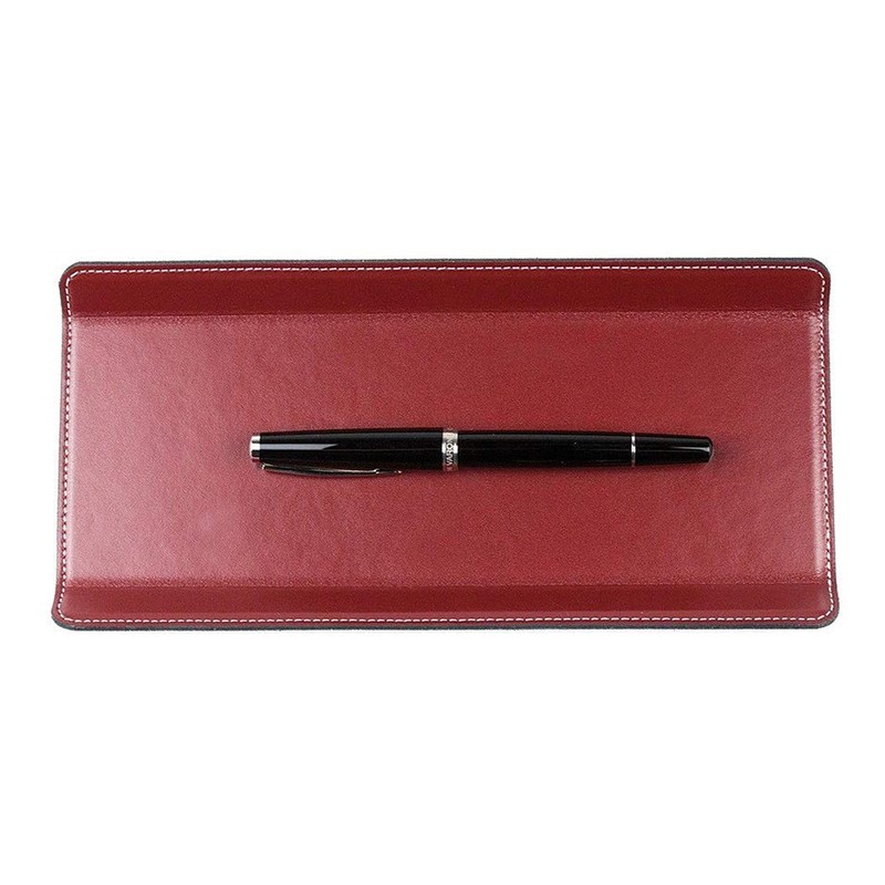 DELMON VARONE - Cambridge Top Grain Leather Red - Genuine Leather Pen Tray for Ballpoint Pen and Fountain Pen - Elegant Pen Tray with Heavy Metal Insert for Desk and Office