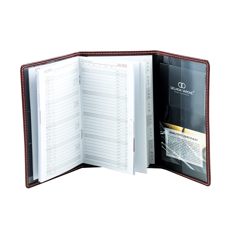 - Versatile – in addition to the genuine leather book cover, you will receive a monthly calendar that shows a complete month with times and also offers you the opportunity to write down important addresses. Important: delivery without writing instrument