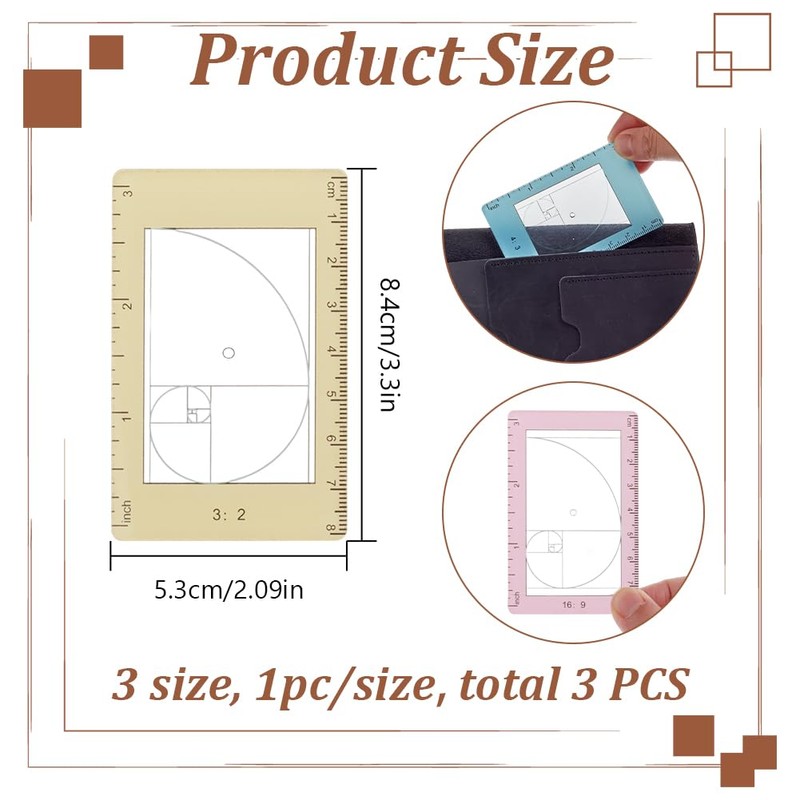 DELORIGIN 3 Sizes Photo Composition View Finder Tool Portable Golden Spiral Viewfinder Acrylic View Finder Rule for Photography Painters Artists Landscape Catcher Portrait Photography
