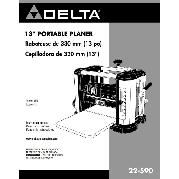 Delta 22-590 13" Portable Planer Instructions Manual